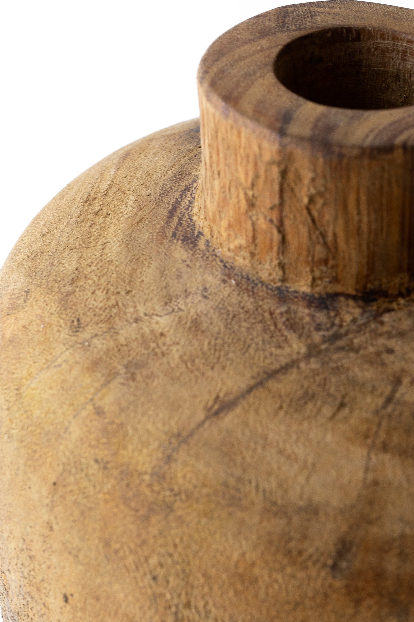 Pieza decorativa elaborada en madera de Suar, con dimensiones de 17,8 cm de diámetro y 30 cm de altura. Esta madera exótica se caracteriza por su durabilidad excepcional, resistencia natural, además de sus vetas únicas con tonalidades que oscilan entre amarillo y café profundo. Perfecta para exhibir ramas secas o artificiales, aportando calidez y autenticidad a cualquier espacio.