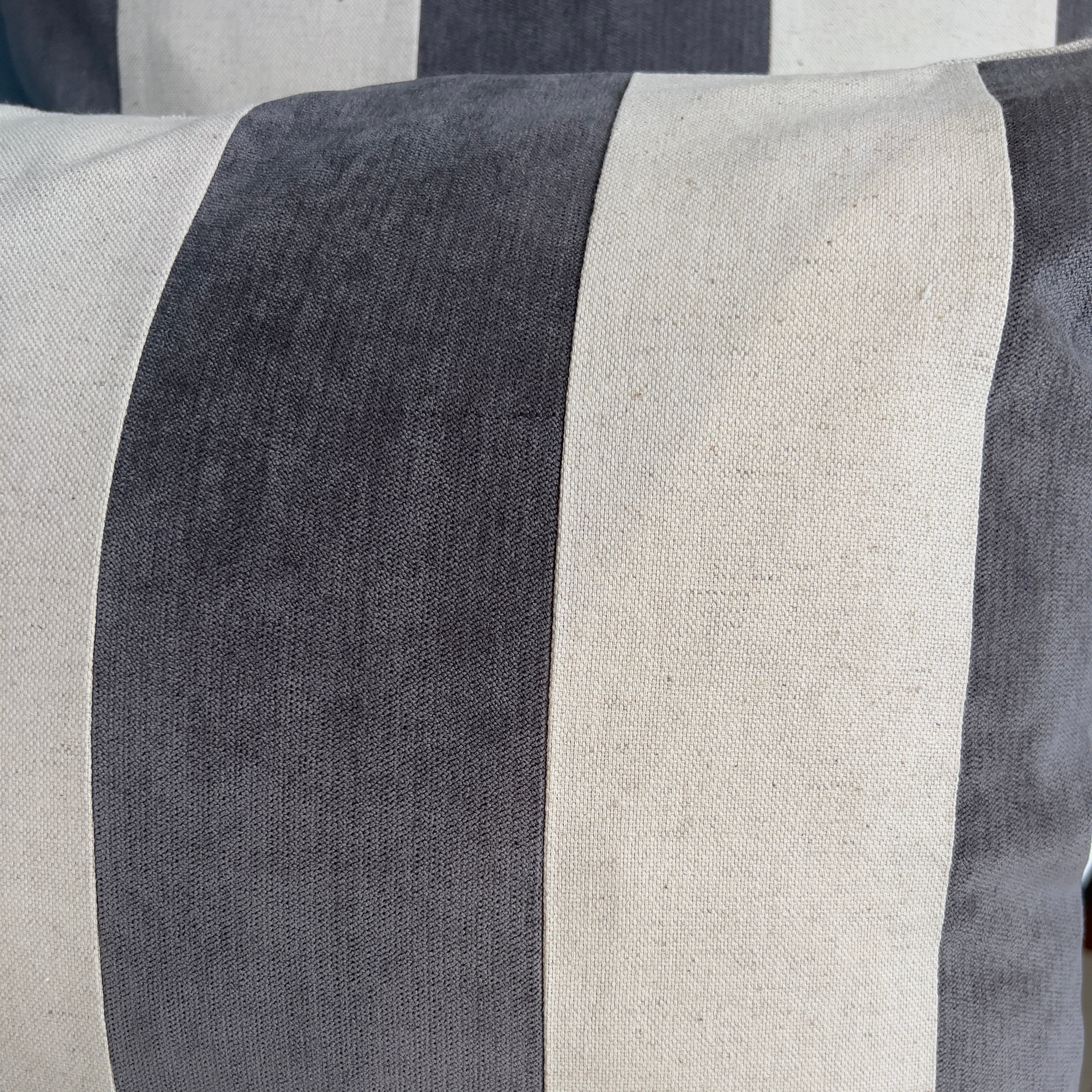 Descubre Capri, una funda de cojín que refleja la serenidad y frescura del Mediterráneo. Su diseño bicolor combina la textura natural del lino/algodón con la profundidad del terciopelo.