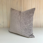 Funda de cojín confeccionada en terciopelo con acabado craquelado en tonalidad marron topo. Dimensiones: 50 x 50 cm.