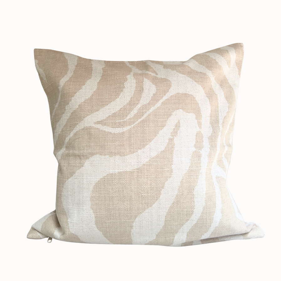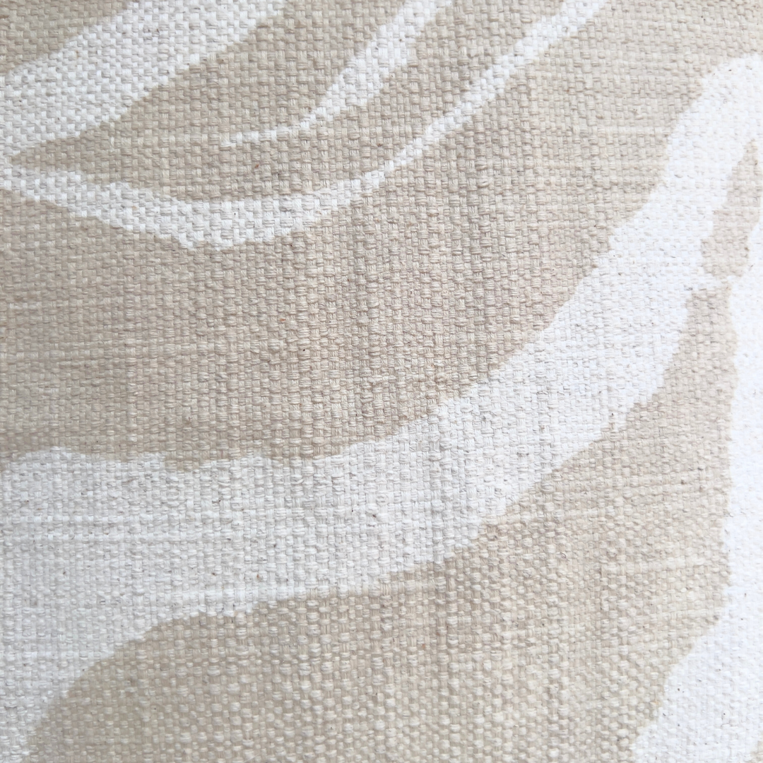 Su patrón zebra en tonos beige y crudo aporta un toque rústico y sofisticado a cualquier espacio. Ideal para decoración contemporánea que busca combinar funcionalidad con estilo natural.