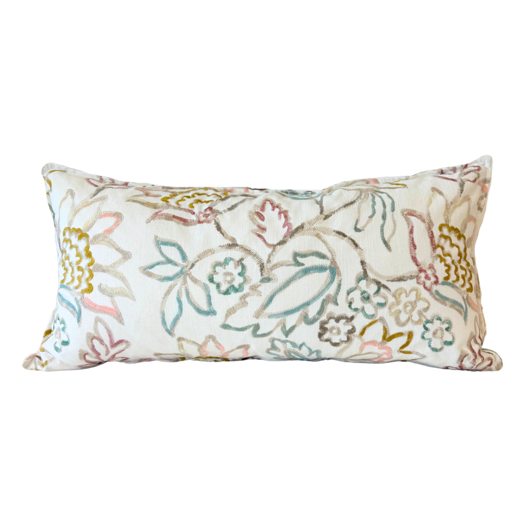 Funda de cojín 90 x 50 cm bordado en tonos pastel.