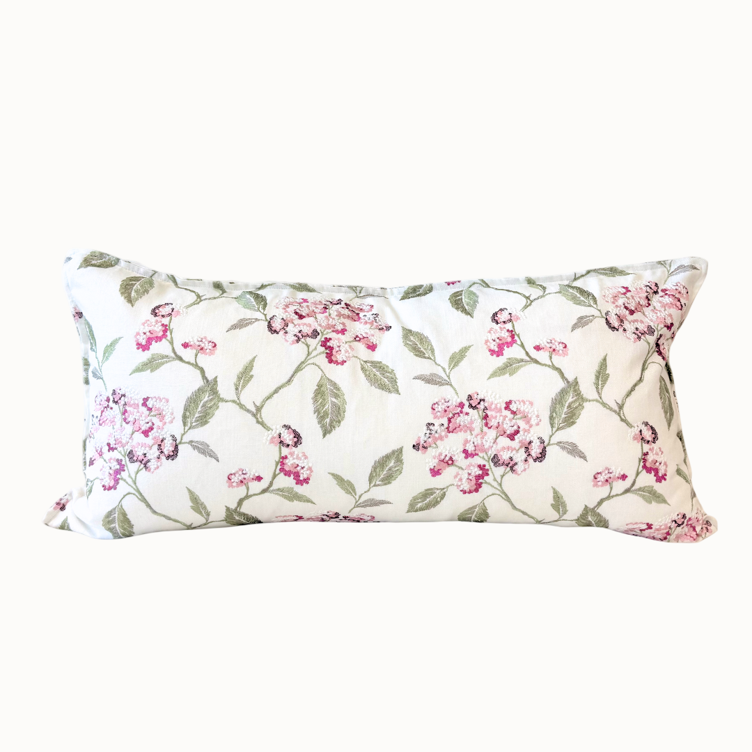 Funda de cojín 90 x 50 cm. bordado de rosa y verde.