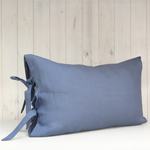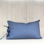 Funda de cojín de 100% lino con amarras color azul