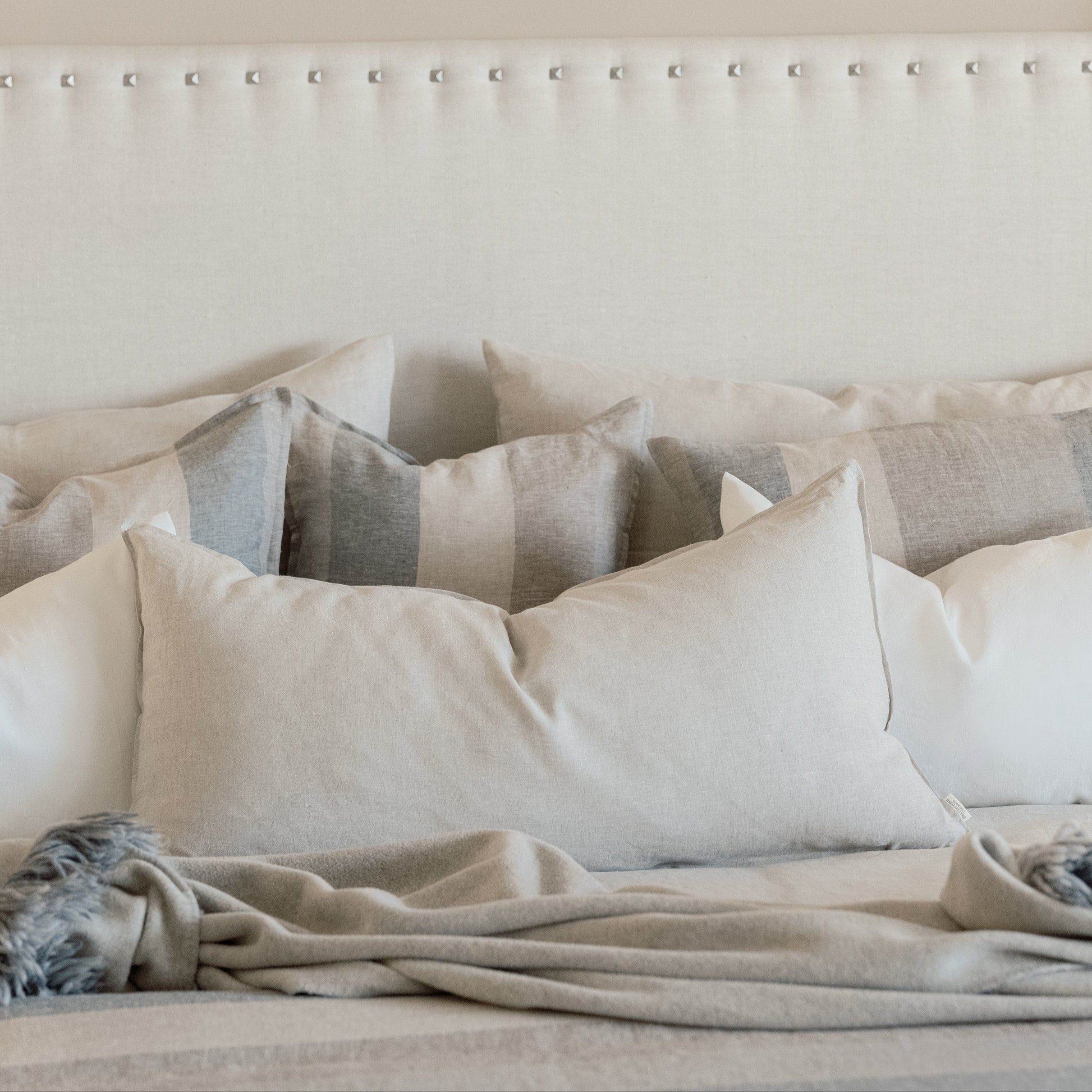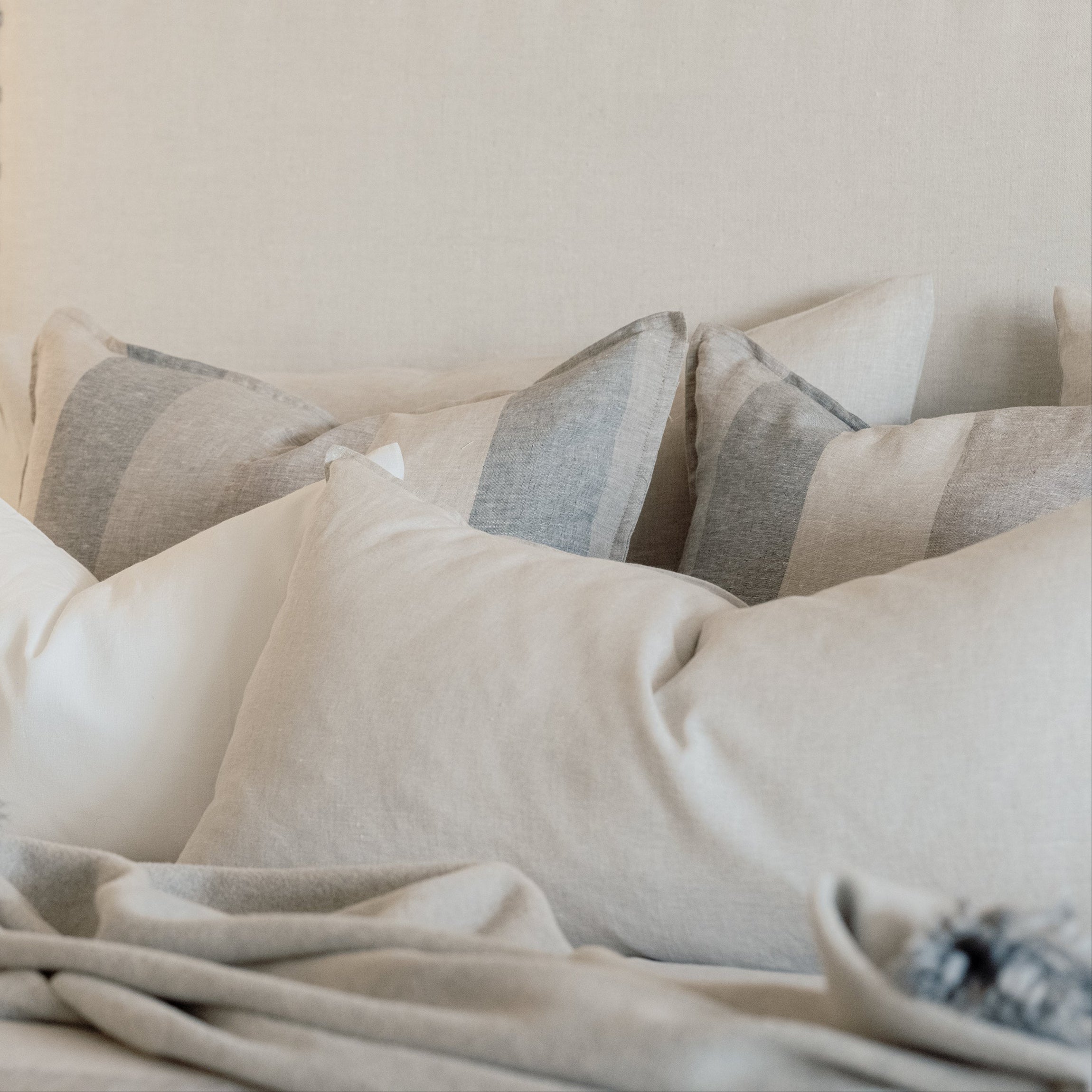 Funda de cojín 100% lino de color natural con mini pestaña.