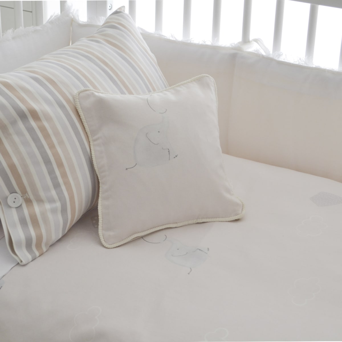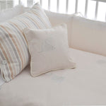 Preciosa funda de plumón para cuna confeccionada con algodón que destaca por su suavidad, siendo capaz de mantener una temperatura corporal adecuada, adaptándose tanto a climas cálidos como fríos. Ideal para la piel de las guaguas.