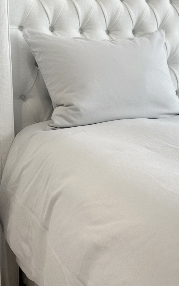 Confeccionado con algodón europeo de fibra larga, suave y liviano. Su textura vaporosa y fresca aporta un aire relajado y elegante a la cama, mientras que su calidad natural garantiza durabilidad y confort con el paso del tiempo.
