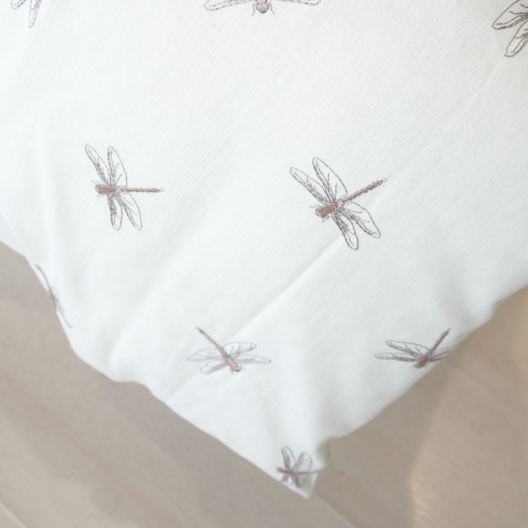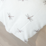 Confeccionado con algodón bordado con delicadas libélulas. Su textura y formas aporta un aire relajado a la cama, mientras que su calidad natural garantiza durabilidad y confort con el paso del tiempo.