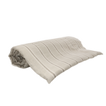 Confeccionado con lino europeo de fibra larga, suave y liviano. Su textura vaporosa y fresca aporta un aire relajado y elegante a la cama, mientras que su calidad natural garantiza durabilidad y confort con el paso del tiempo.