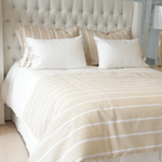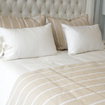 Confeccionado con algodón francés estilo rústico. Su textura aporta un aire relajado a la cama, mientras que su calidad natural garantiza durabilidad y confort con el paso del tiempo.