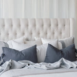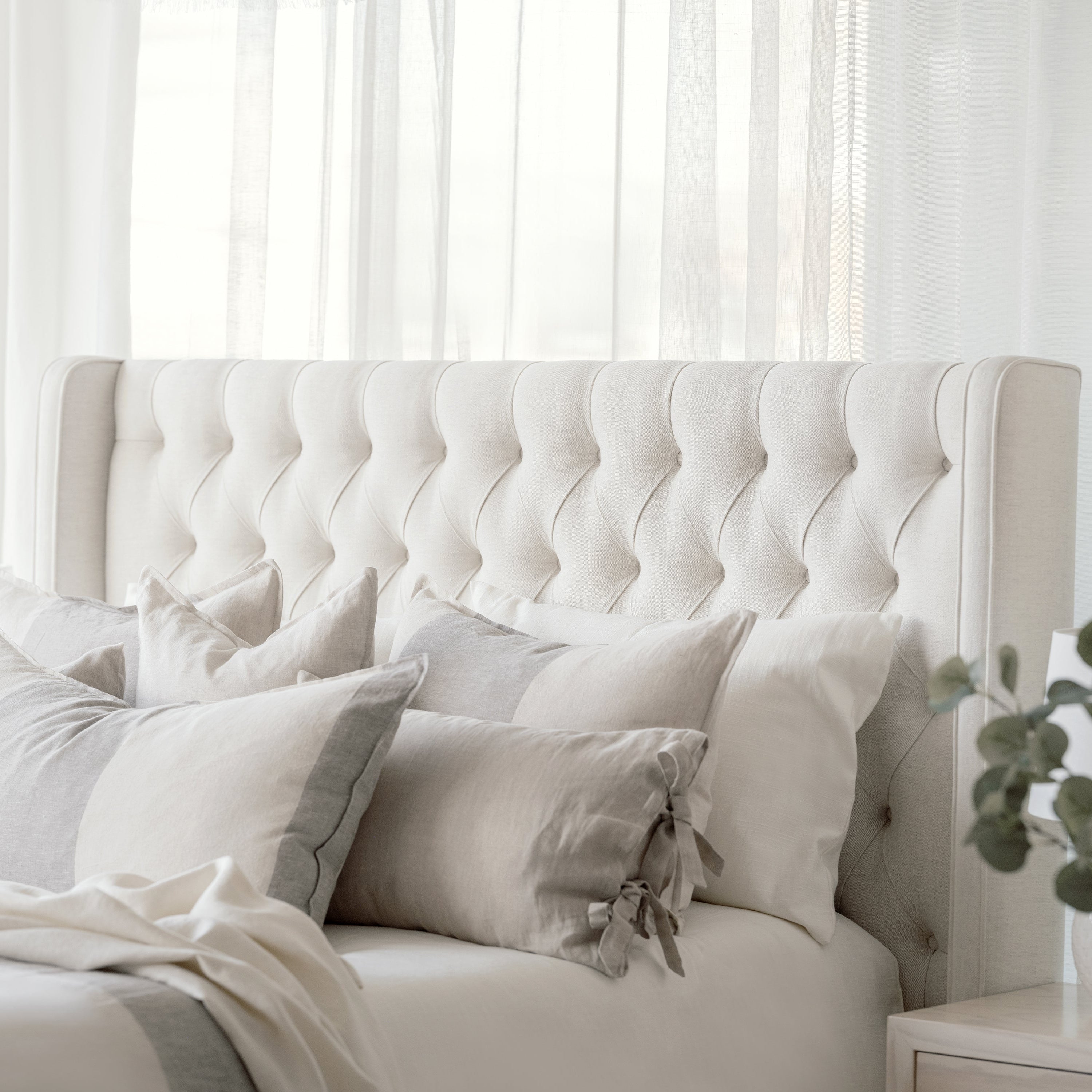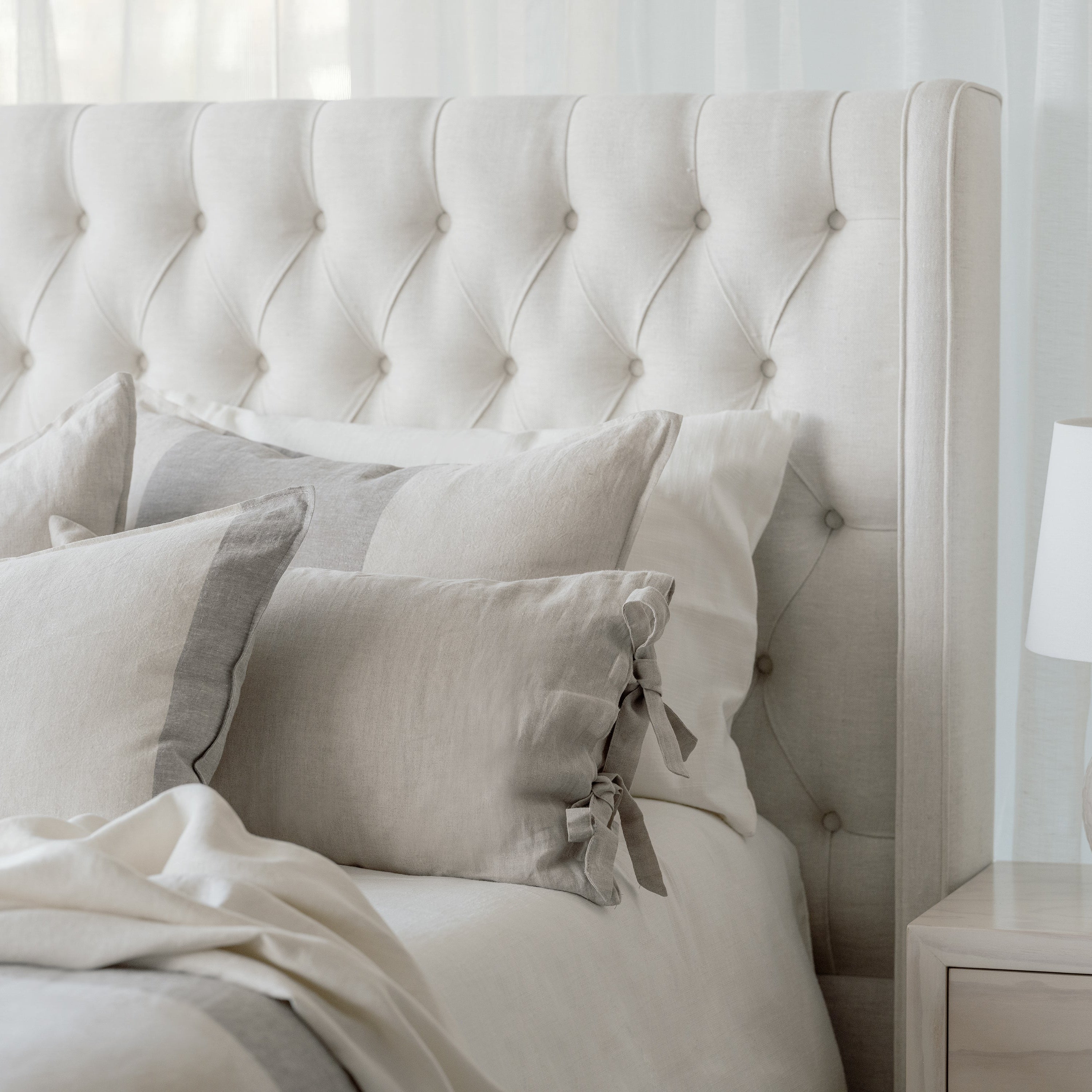 Este respaldo capitoné en lino color hueso combina elegancia y confort, gracias a su tapicería de 100% lino de alto gramaje que garantiza durabilidad y textura premium.